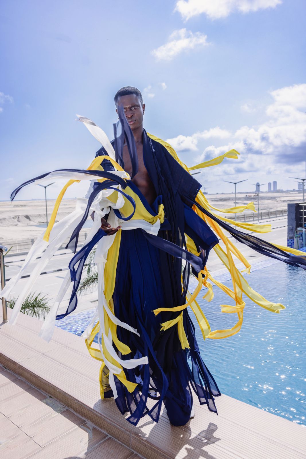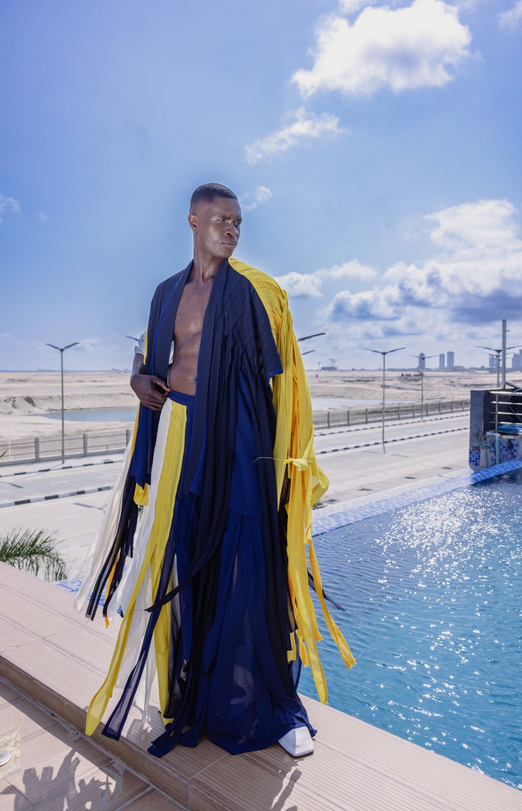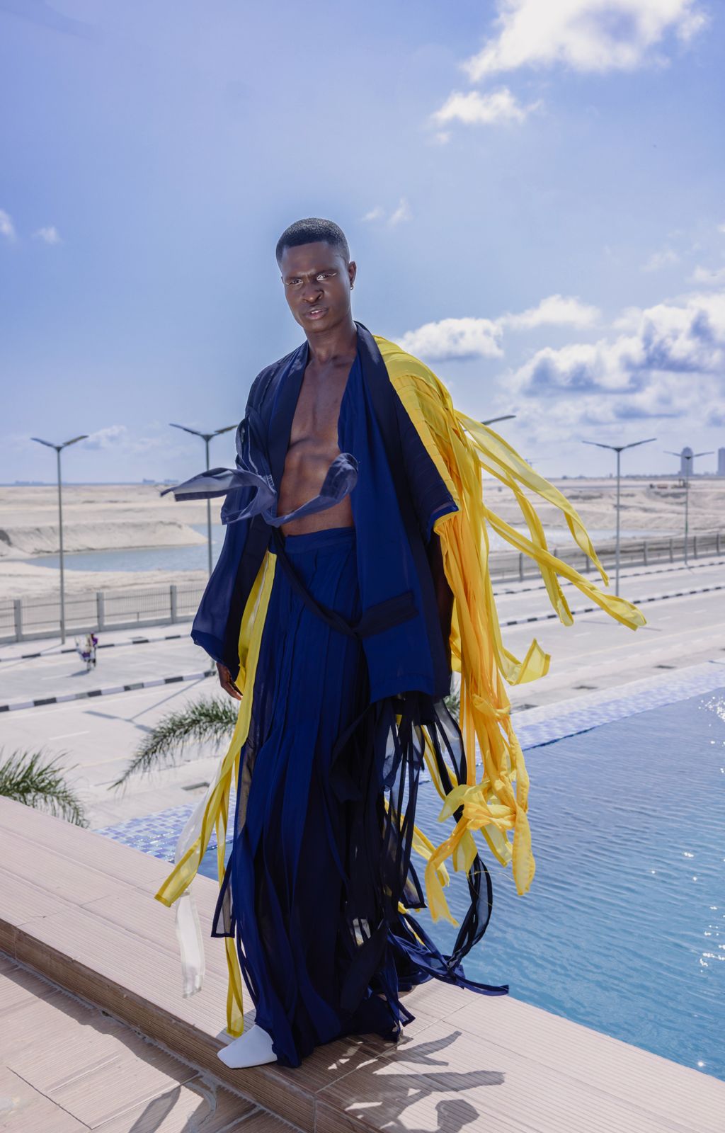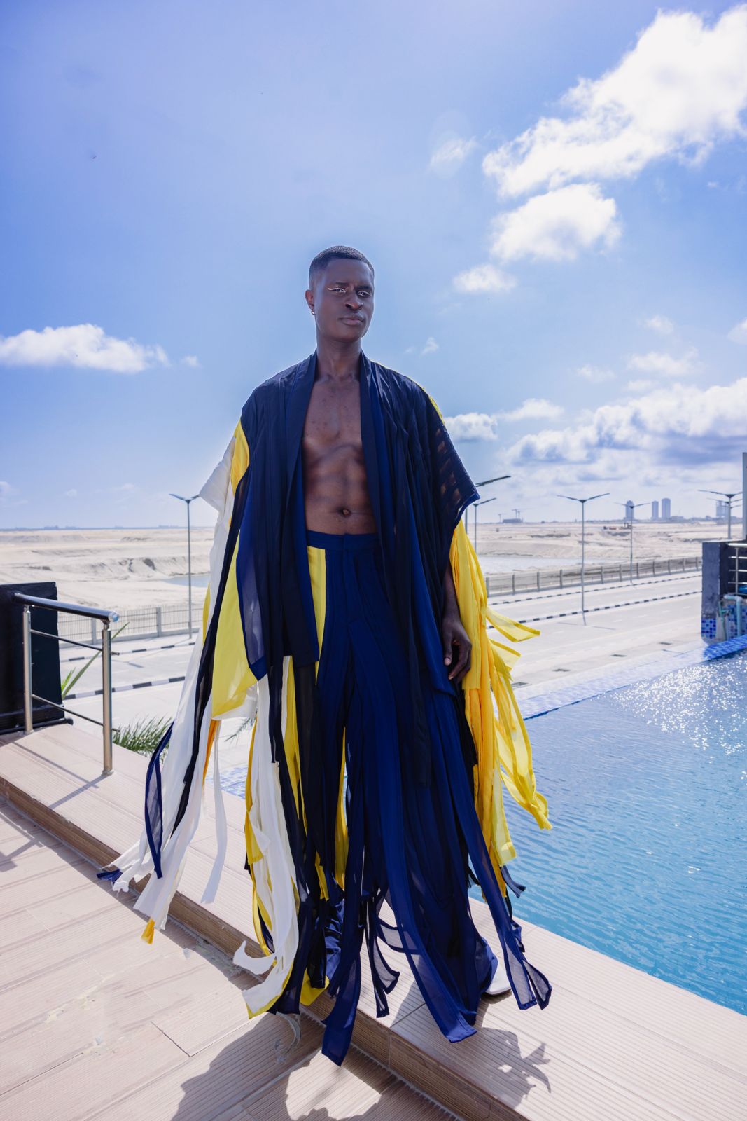 TIERED PANEL CHIFFON KIMONO AND PANTS.